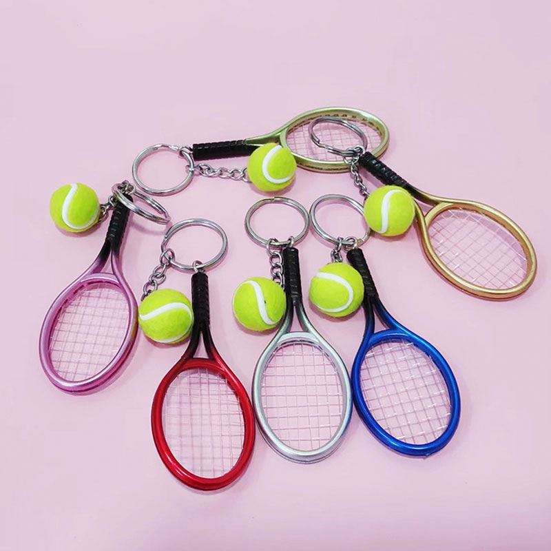พวงกุญแจเทนนิสกีฬาของขวัญของที่ระลึก3d มินิเทนนิสพวงกุญแจดาวโชคดีของขวัญ2ซม. พวงกุญแจลูกเทนนิสสีสันสดใส