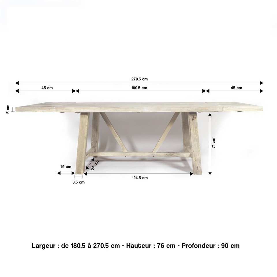 โต๊ะรับประทานอาหารไม้มะม่วงฟอกขาวเทอร์ราพร้อมส่วนขยาย
