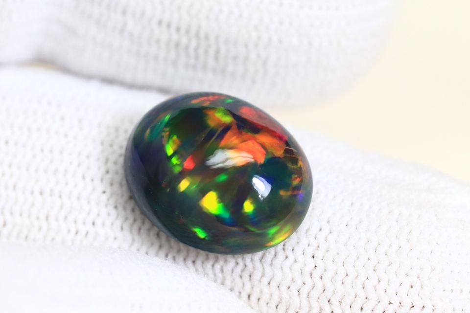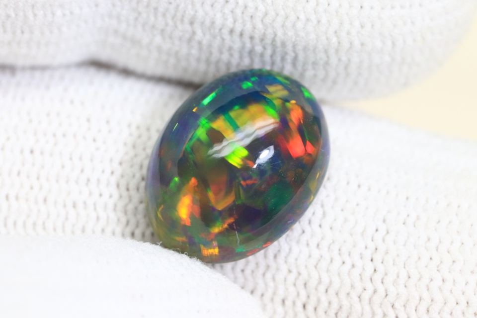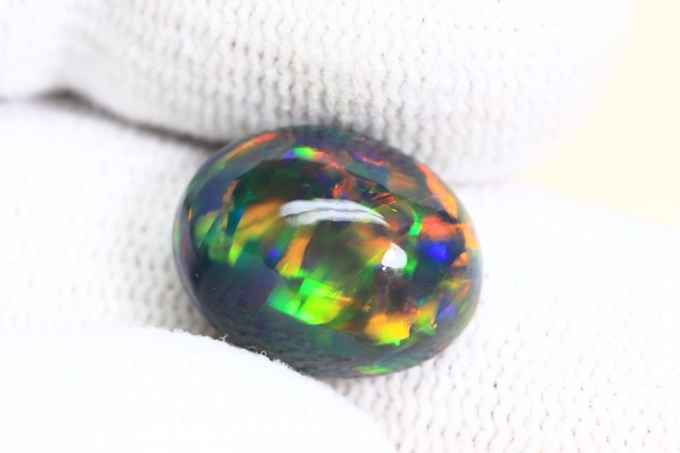 อัญมณีโอปอลเอทิโอเปียที่ยอดเยี่ยมรูปไข่ทรงหลวมและขัดเงาเรียบเนียนเรืองแสงทรงอัญมณีโอปอลทรงหลังเบี้ยสีดำของเอธิโอเปียสำหรับเครื่องประดับ