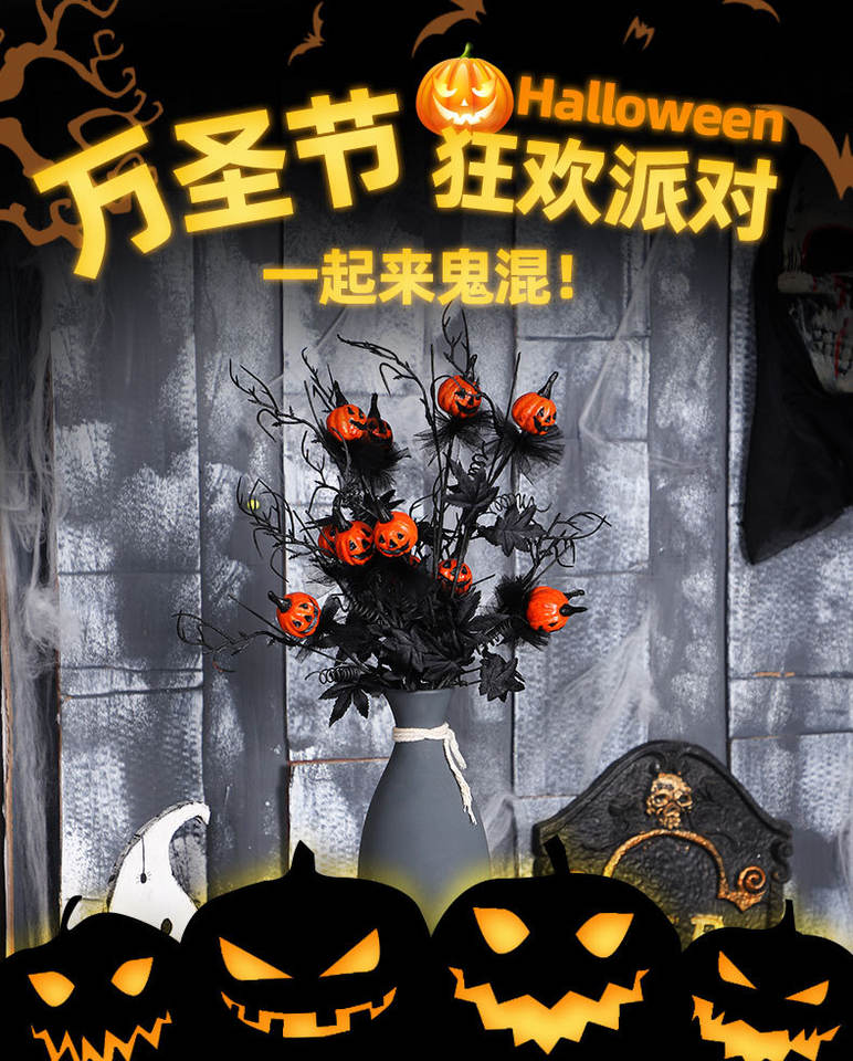 การจัดดอกไม้ฟักทองที่น่ากลัว ทำจากพลาสติกทนทาน สำหรับตกแต่งบ้านในช่วงเทศกาลฮาโลวีน ของตกแต่งงานปาร์ตี้สำหรับผู้ใหญ่
