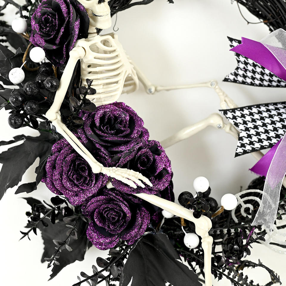 ชื่อผลิตภัณฑ์:ดอกกุหลาบสีดำโกธิคและของตกแต่งประตูโครงกระดูก