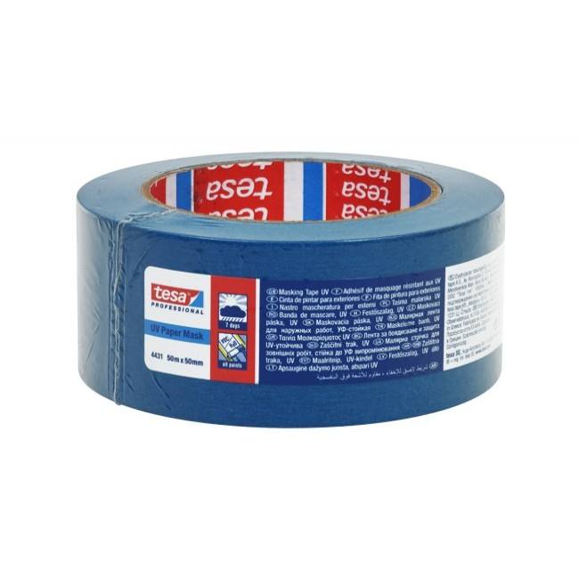 Tesa UV Paper Mask Tape for Outdoor Use 7 Days, Blue, Length 50 m Width 50 mm