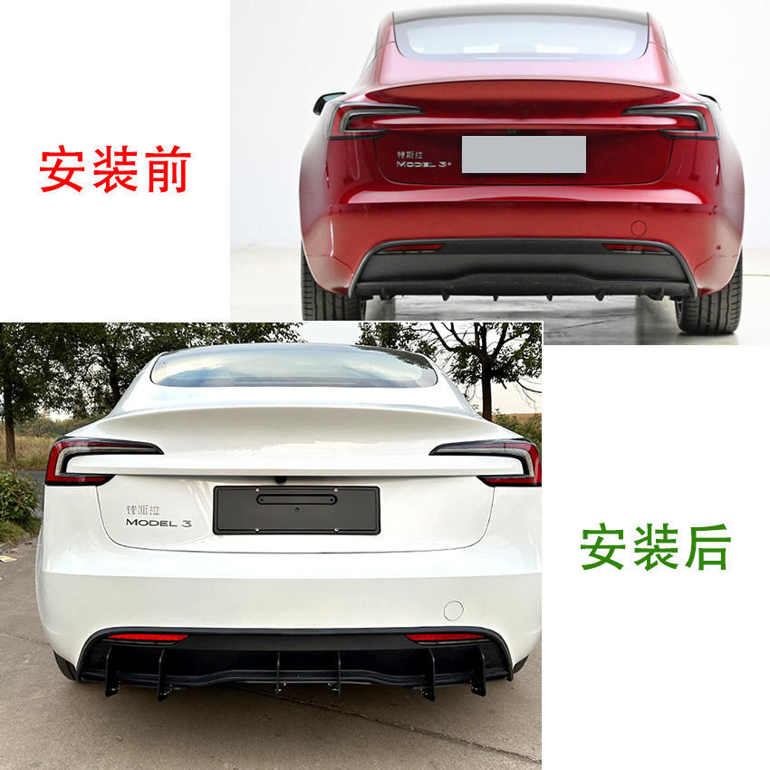 สปอยเลอร์หลัง Tesla Model 3 สีดำเงา แบบ Ducktail พร้อมดิฟฟิวเซอร์กันชน รุ่นปี 2023+ Facelift