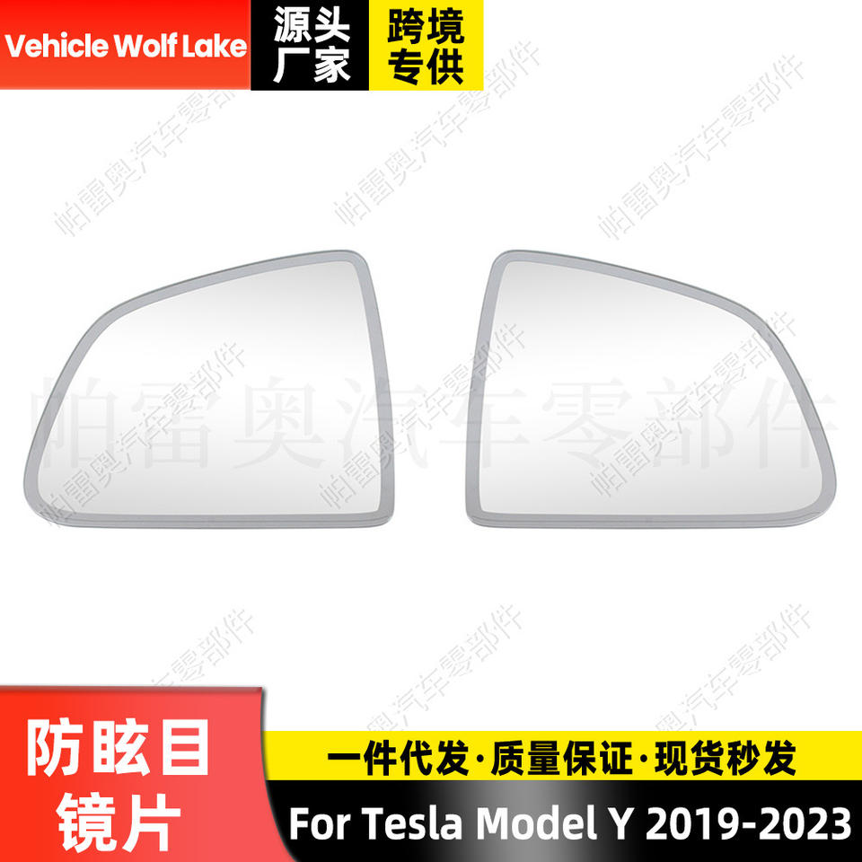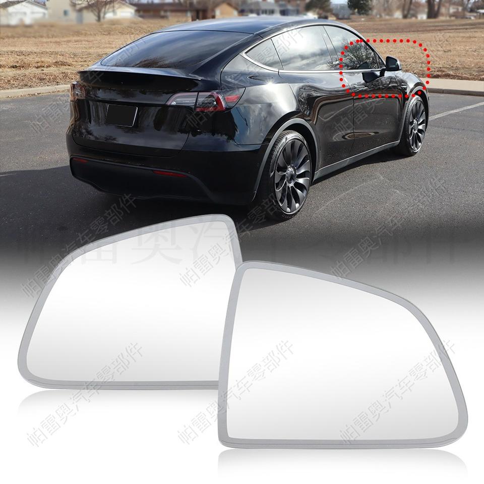 เลนส์กระจกมองข้างเทสล่า รุ่น Y ปี 2019-2023 ป้องกันแสงสะท้อน อะไหล่เปลี่ยนซ้ายขวา สีเงิน วัสดุ ABS