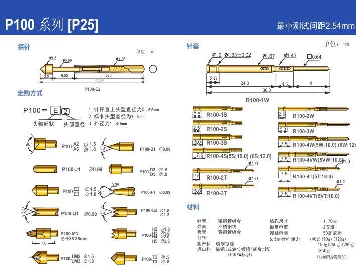 PA100-Q2ทดสอบหัว PA100 1.5มม. หัวเข็ม1.36มม. หัวทดสอบแบบมีสปริงหัวเล็บ4อัน