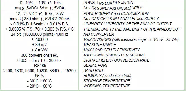 Number of load cells:up to 8 (350 OHM) /4 wires