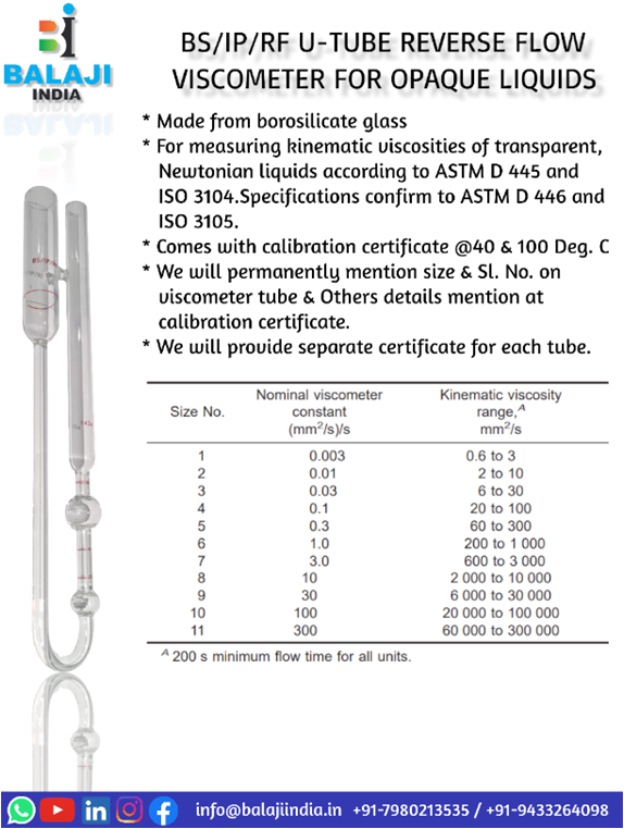 OSWALD REVERSE FLOW BS-IP-RF U TUBE VISCOMETERหมายเลขรุ่น