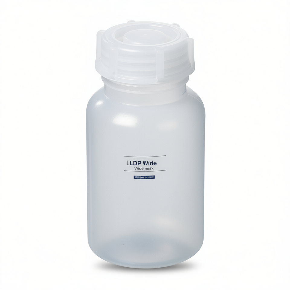 เครื่องทดสอบความแม่นยำสูง 0.5% ขวด LDPE ปากกว้าง ออกแบบตามหลักสรีรศาสตร์ พร้อมหูจับใช้งานง่ายสำหรับบรรจุของเหลว Burkle GmbH