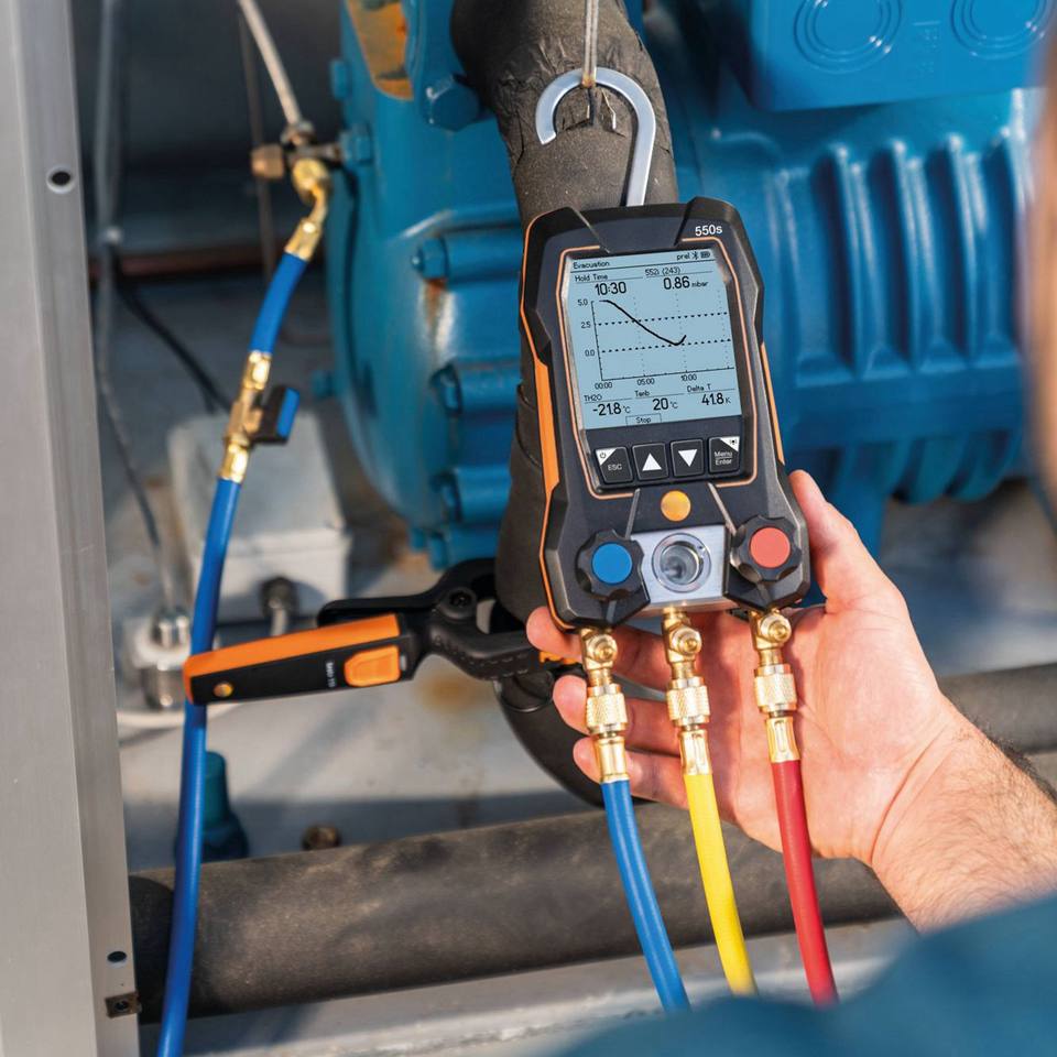 เกจวัดความดันดิจิตอล Testo 550S 549 ระบบ 2 วาล์ว สำหรับเครื่องปรับอากาศ HVAC พร้อมเครื่องวัดอุณหภูมิ ชุดเครื่องมือวาล์ว