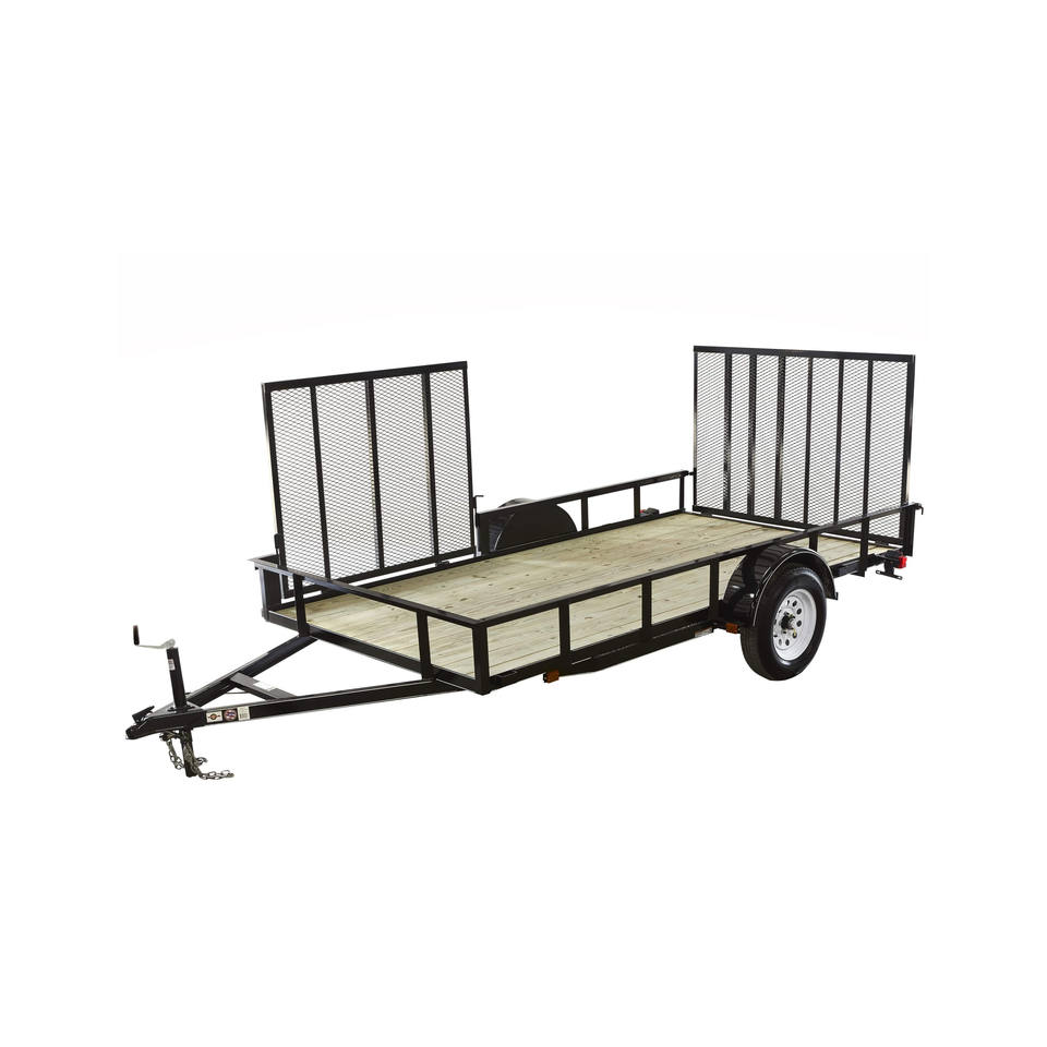 เทรลเลอร์เทรลเลอร์เทรลเลอร์ขนาด5x8น้ำหนักเบาพร้อมพื้นตาข่ายเหล็กแบบขยายและรางด้านข้างแบบถอดได้