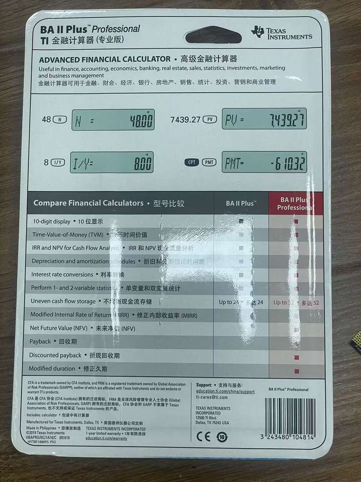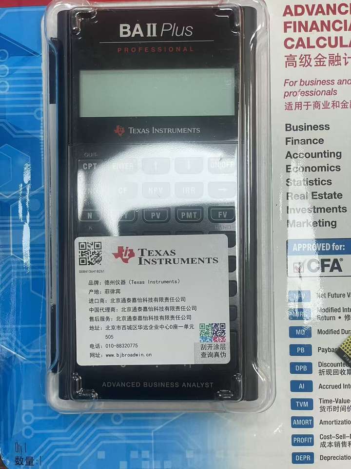 เครื่องคิดเลข Texas BA II Plus Professional สีดำ พลาสติก ขนาดกลาง ใช้ถ่านกระดุม 12 หลัก พร้อมปฏิทินในตัว สำหรับธุรกิจและการเงิน