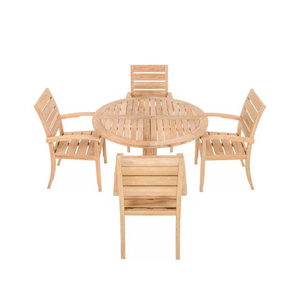 ชุดโต๊ะรับประทานอาหารในสวนทรงกลมไม้สัก Texel Elegant สำหรับการใช้งานกลางแจ้ง