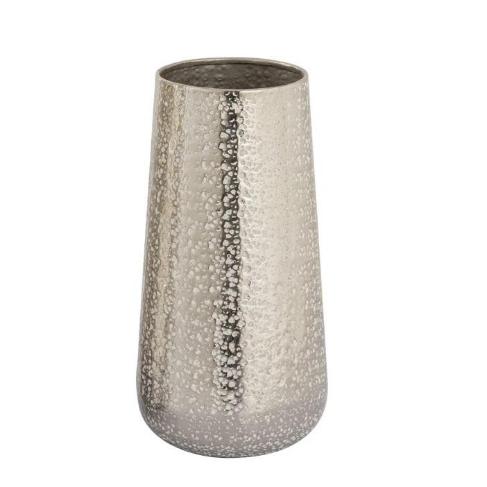 แจกันดอกไม้โลหะทรงรีลวดลายพื้นผิวสีเงินมันวาวสำหรับตกแต่งห้องนั่งเล่นบ้านแจกันดอกไม้ขนาดใหญ่