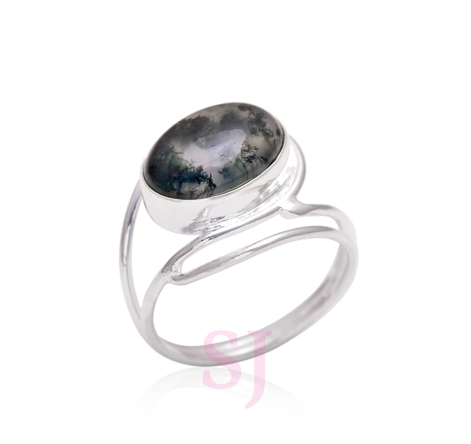 เครื่องประดับที่ดีที่กำหนดเองสำหรับผู้หญิง925บริสุทธิ์แหวนเงินสเตอร์ลิงธรรมชาติมอสอาเกตอัญมณีออกแบบพื้นผิวของขวัญวันครบรอบแต่งงาน