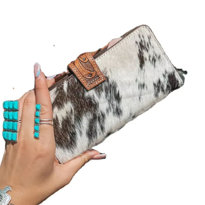 Textured Cowhide Leather Wallet Set Handcrafted Vintage Western Clutch and Trifold Combo for Women