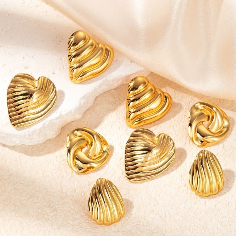 ลายเส้นเรขาคณิตแบบมีพื้นผิว, ต่างหูรูปงู, ต่างหูทรงสี่เหลี่ยมสำหรับผู้หญิง ชุบทอง 18K สแตนเลสสตีล