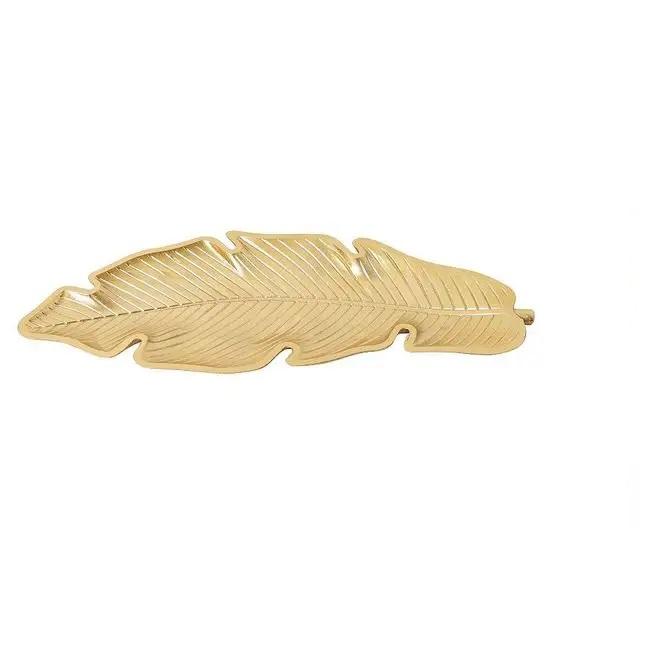 จานชามอลูมิเนียมตกแต่งบนโต๊ะอาหารจานและถาดบนโต๊ะอาหารดีไซน์รูปใบไม้บนพื้นผิวสีทองสำหรับนักออกแบบโรงแรม