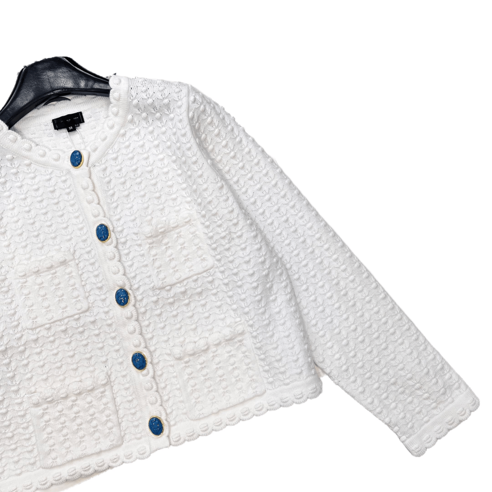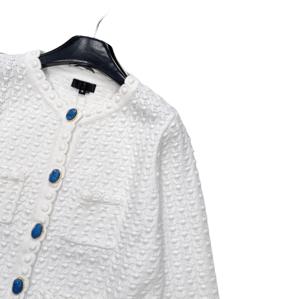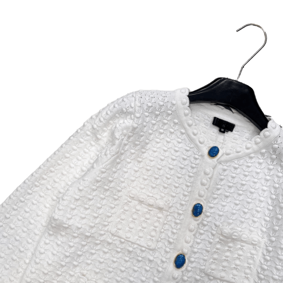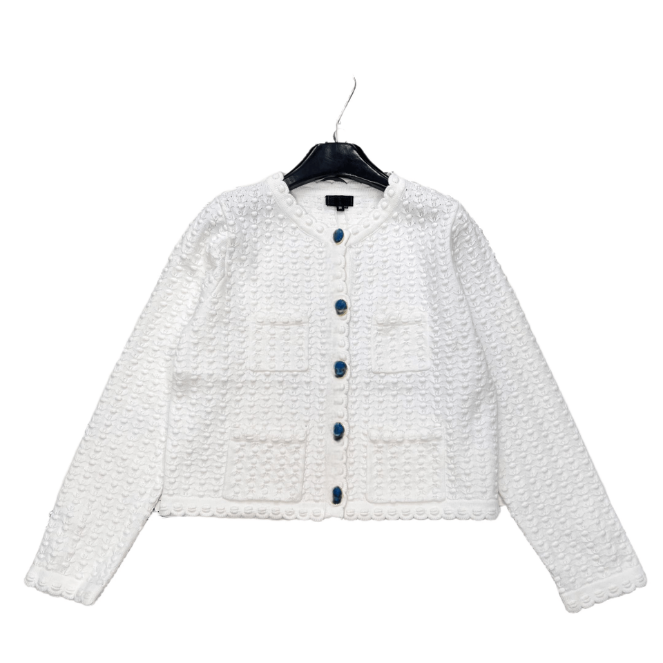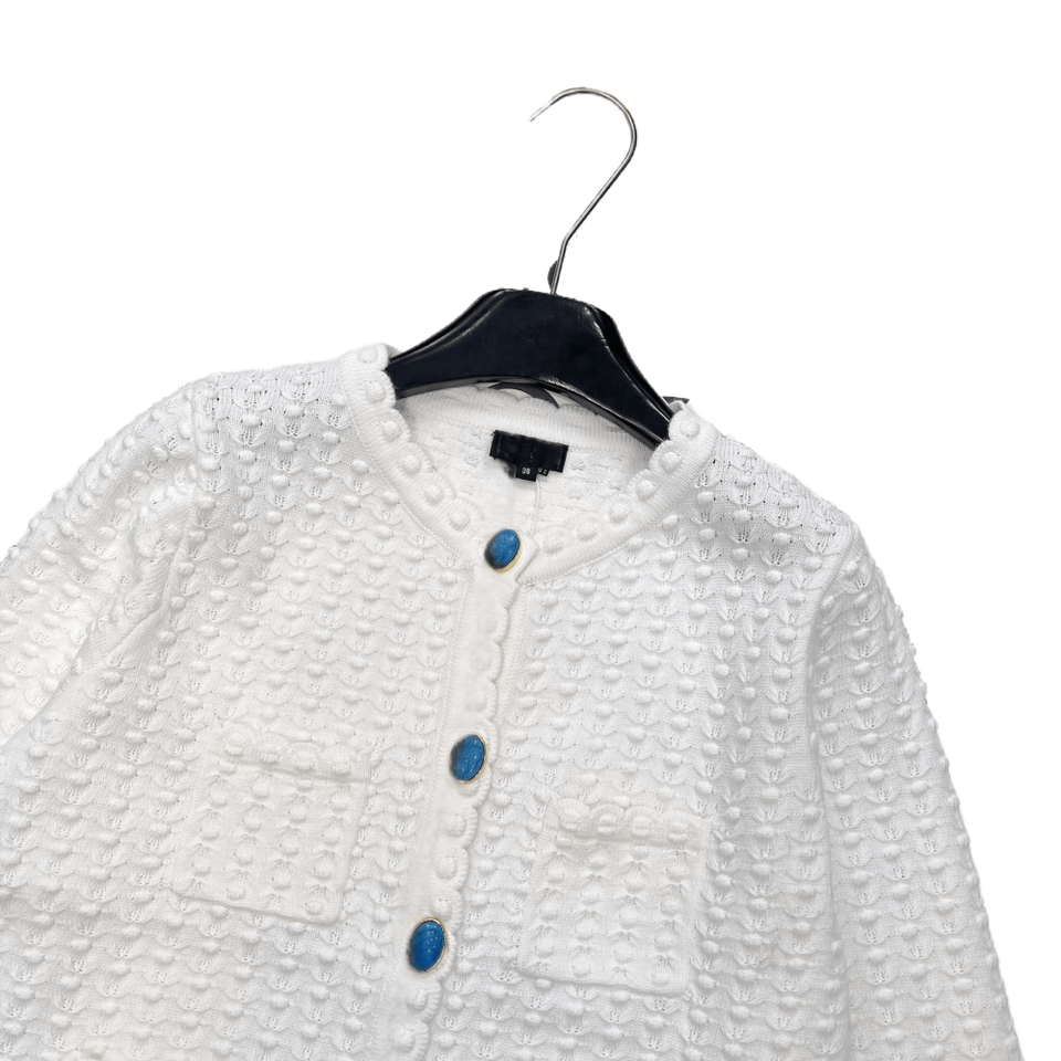 เสื้อแจ็คเก็ตคาร์ดิแกนถักลายป๊อปคอร์นขอบหยักติดกระดุมด้านหน้าสำหรับสวมใส่ในชีวิตประจำวันแบบสบายๆ