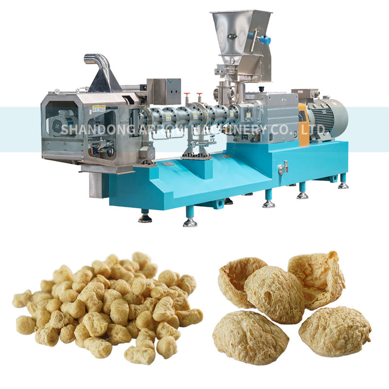เครื่องผลิตโปรตีนถั่วเหลืองแบบมีพื้นผิวสายการผลิตเนื้อถั่วเหลืองเครื่องอัดผลิตภัณฑ์ถั่ว