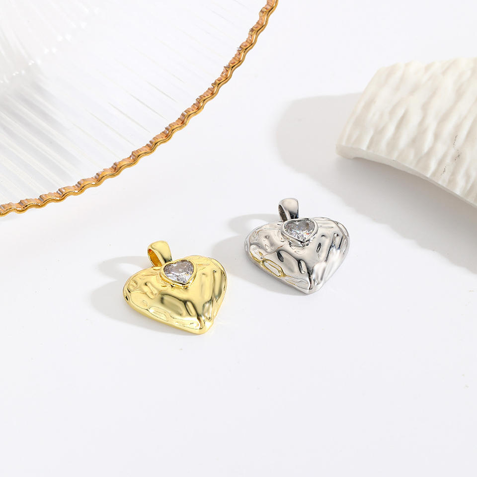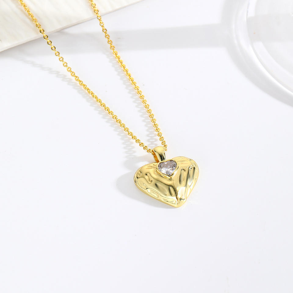 สร้อยคอจี้ทองเหลืองชุบทองผิวสัมผัสพิเศษประดับเพชร CZ รูปหัวใจ ดีไซน์ทันสมัยสำหรับผู้หญิง เหมาะสำหรับงานปาร์ตี้