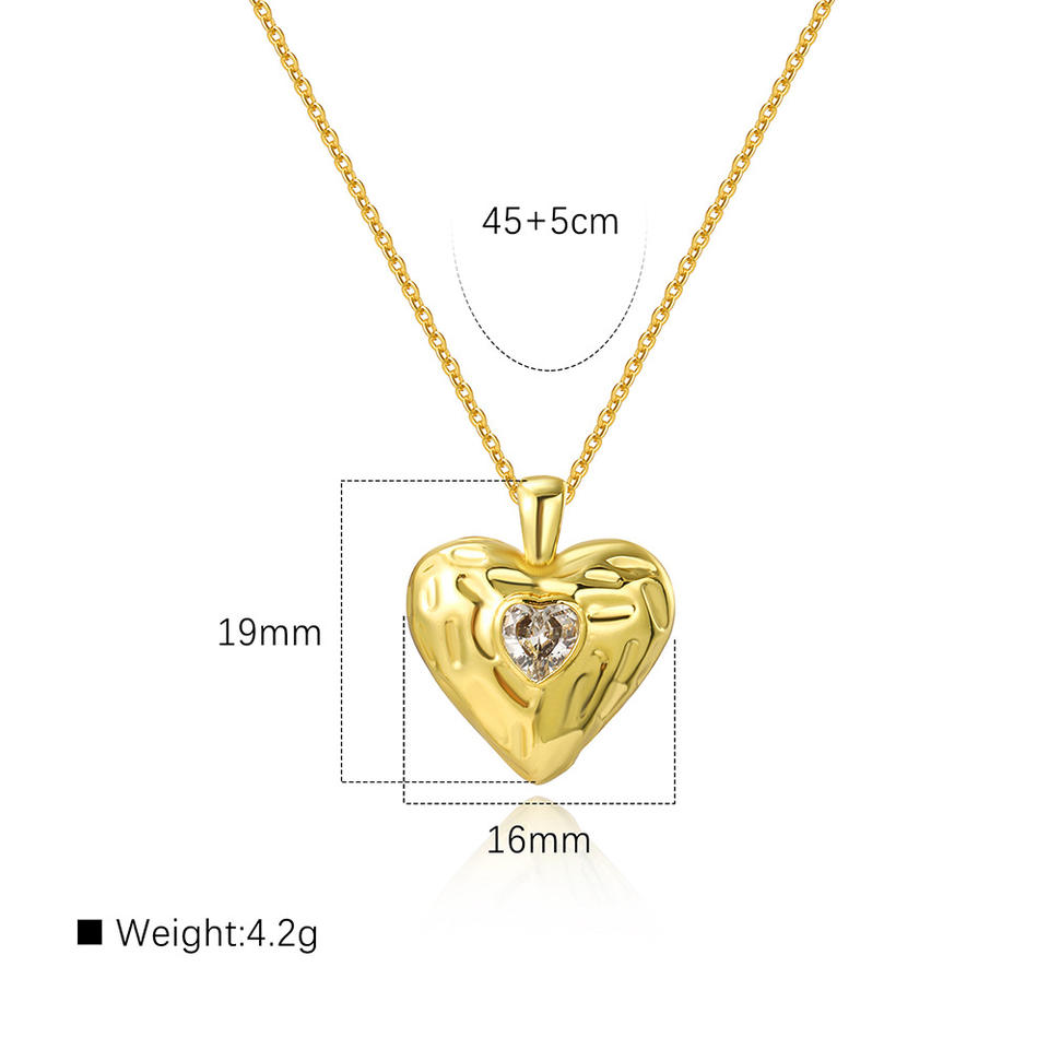 พื้นผิวทองเหลืองจี้สร้อยคอหิน CZ เครื่องประดับแฟชั่นสร้อยคอหัวใจสำหรับผู้หญิง