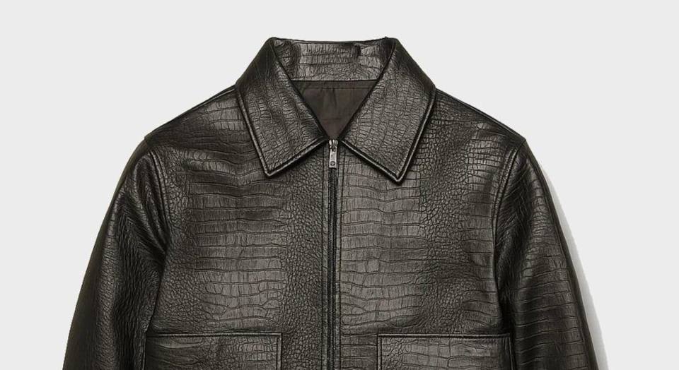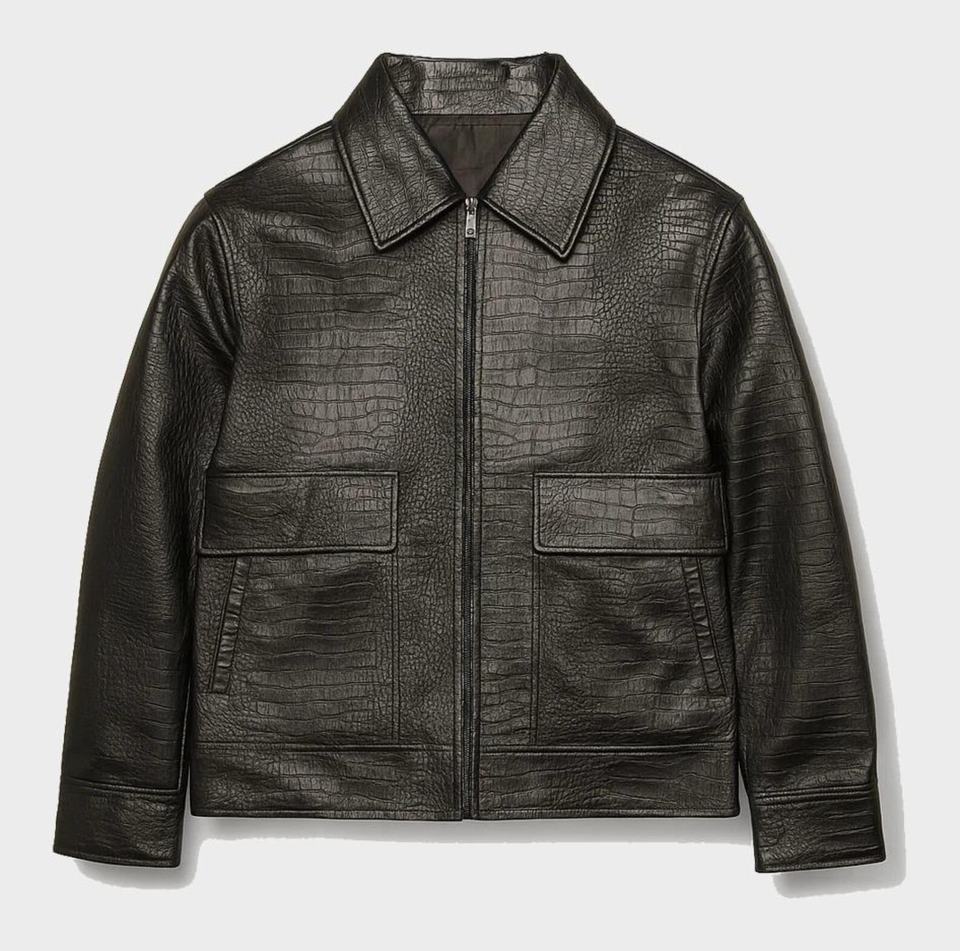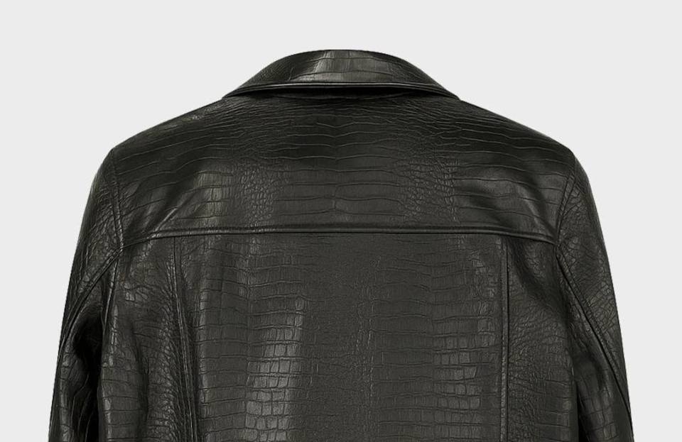 แจ็กเก็ตหนังจระเข้ผิวนูนหนังวัวพื้นผิวที่สร้างขึ้นเพื่อสัมผัสที่หรูหราหรูหราและโทนสีแฟชั่นที่ยกระดับ