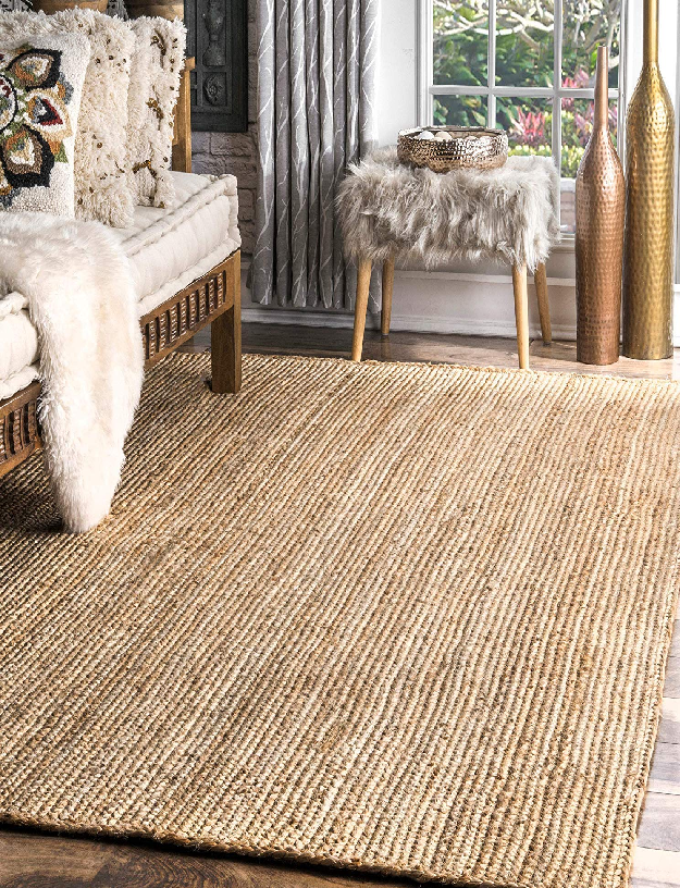พื้นผิวพรมปอกระเจาเส้นใยธรรมชาติโทนสีดินและสานที่ทนทานมีจำหน่ายในราคาขายส่ง