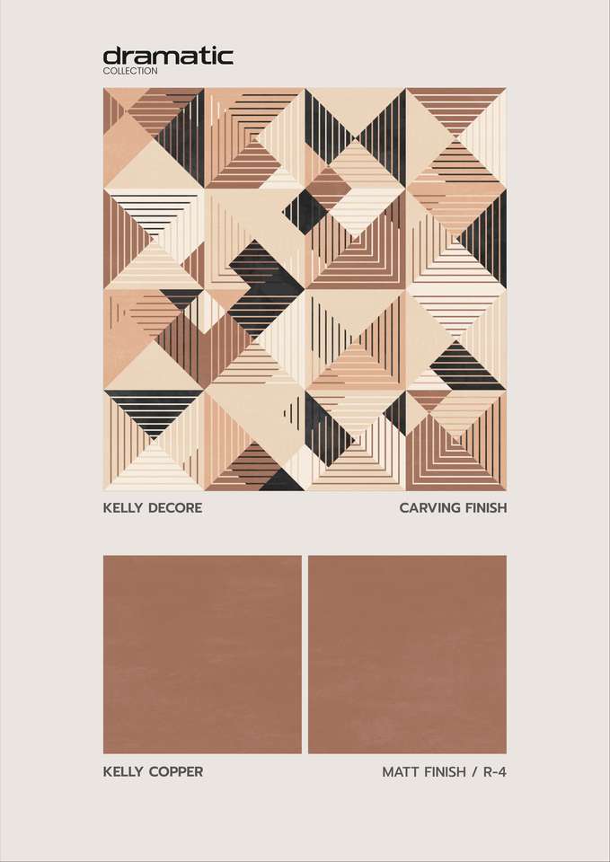กระเบื้องพอร์ซเลนลายแกะสลักขนาด 24x24 นิ้ว พื้นผิวด้าน ให้ลวดลายละเอียด สร้างแสงสะท้อนที่ควบคุมได้ดี และพื้นผิวที่เรียบเนียน