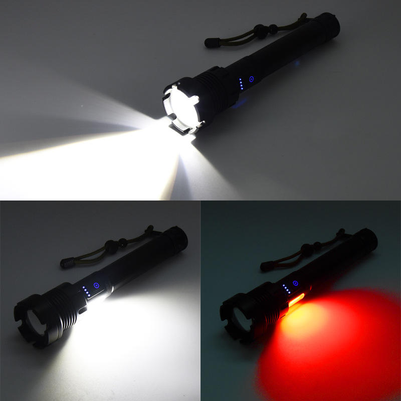 ทีจี เอสดี 210 ไฟฉาย LED 3000 มิลลิแอมป์แบบชาร์จไฟได้ซูมแสงสีแดงสีขาวไฟฉายยุทธวิธีกลางแจ้ง
