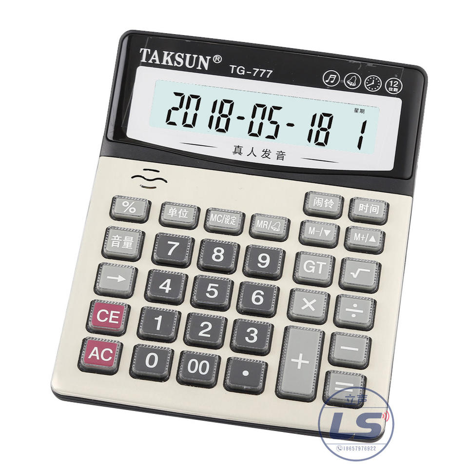 เครื่องคิดเลขเสียงพูด Tg777 ขนาดใหญ่ สำหรับตั้งโต๊ะ วัสดุ ABS สีดำ ใช้พลังงานจากแบตเตอรี่ รองรับโลโก้สั่งทำ ใช้สำหรับงานสำนักงานทางการเงิน