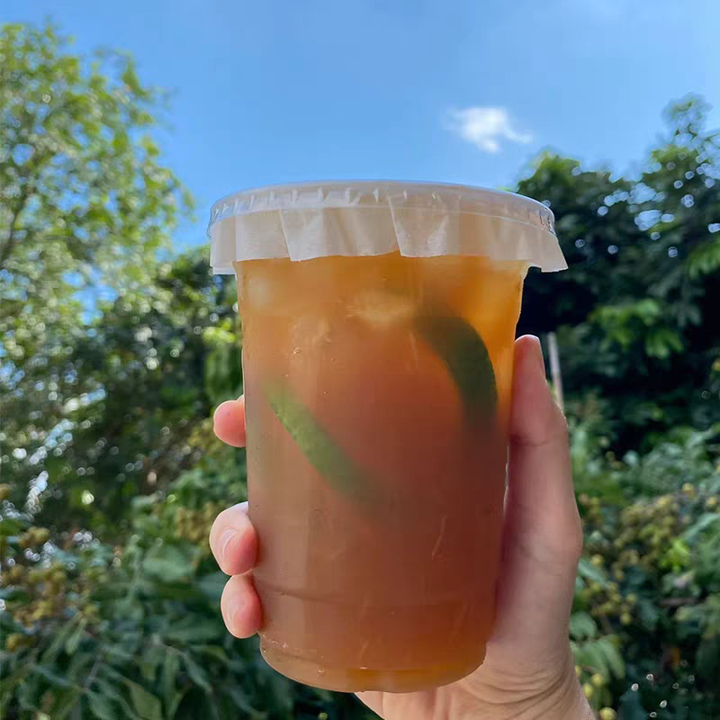 ถ้วยน้ำชาเลมอนแบบใช้แล้วทิ้งขนาด90นิ้วถ้วยใส่กาแฟนมหรือเครื่องดื่มเย็นๆพร้อมฝา