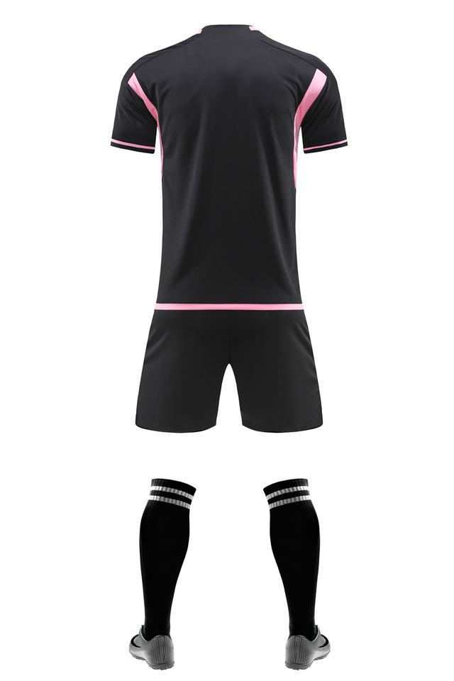 ชุดเสื้อฟุตบอลสำหรับผู้ชายชุดเสื้อฟุตบอลตาข่ายสีชมพูสีดำพร้อมบริการ OEM พิมพ์ดิจิตอล