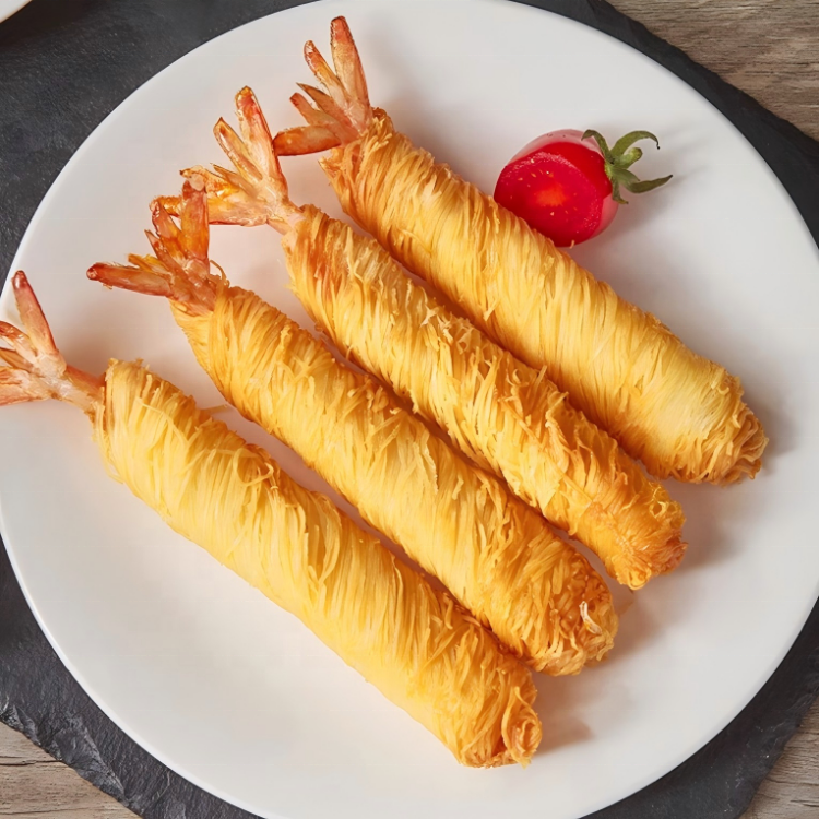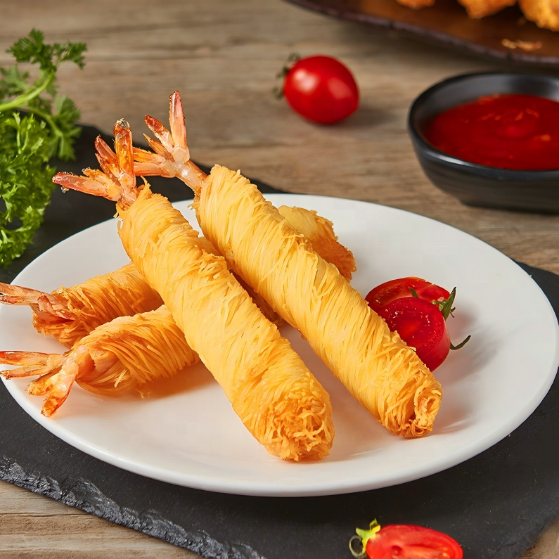 กุ้งมิสัวสไตล์สตรีทฟู้ดสไตล์อาหารไทยพร้อมปรุงแช่แข็งสีทองและกรอบเมื่อทอด