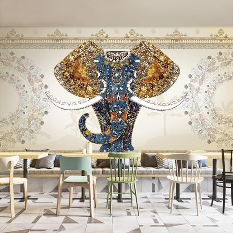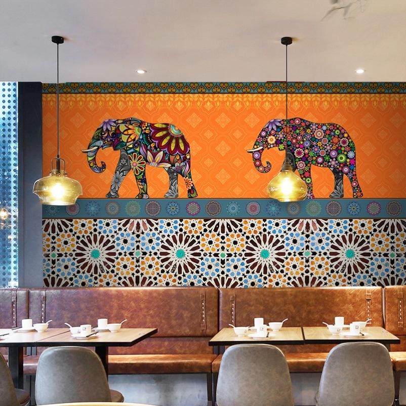 วอลเปเปอร์ลายช้างสไตล์ไทย เอเชียตะวันออกเฉียงใต้ อินเดีย เซน ย้อนยุค สำหรับร้านสปา ร้านอาหารไทย ตกแต่งร้าน