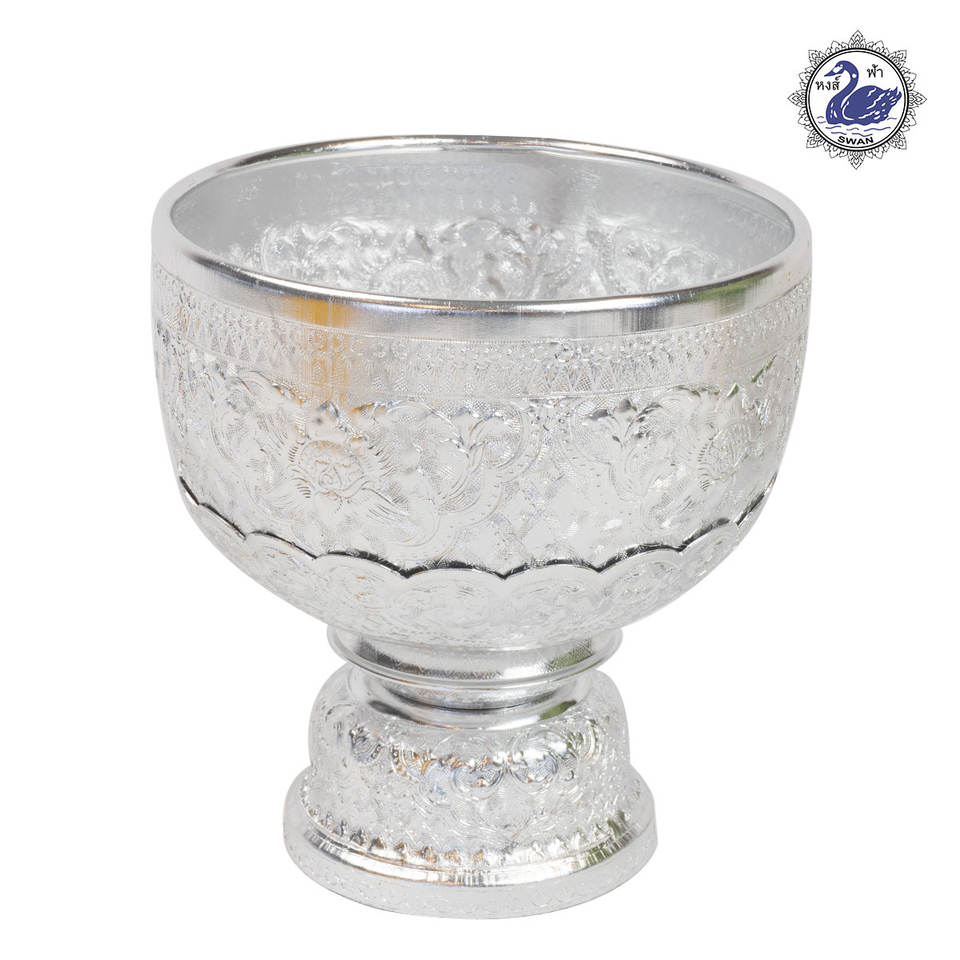 ชุดอุปกรณ์เสิร์ฟแบบดั้งเดิมของไทย ชามพร้อมฐาน หลายขนาด ทำจากอะลูมิเนียมสีเงิน ชามและฐานสำหรับเป็นของที่ระลึกจากประเทศไทย