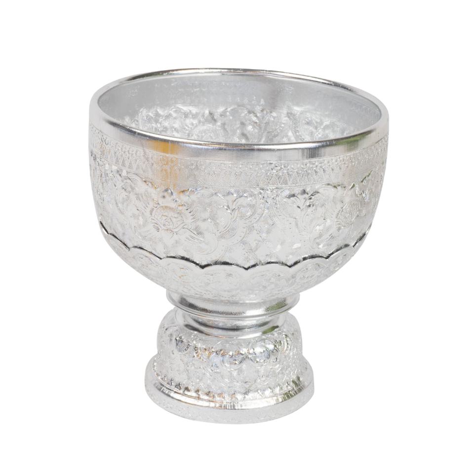 แท่นวางชามแบบใช้ซ้ำได้สำหรับเสิร์ฟอาหารไทยถาดเสิร์ฟอลูมิเนียมสีเงินแบบดั้งเดิมหลายขนาด