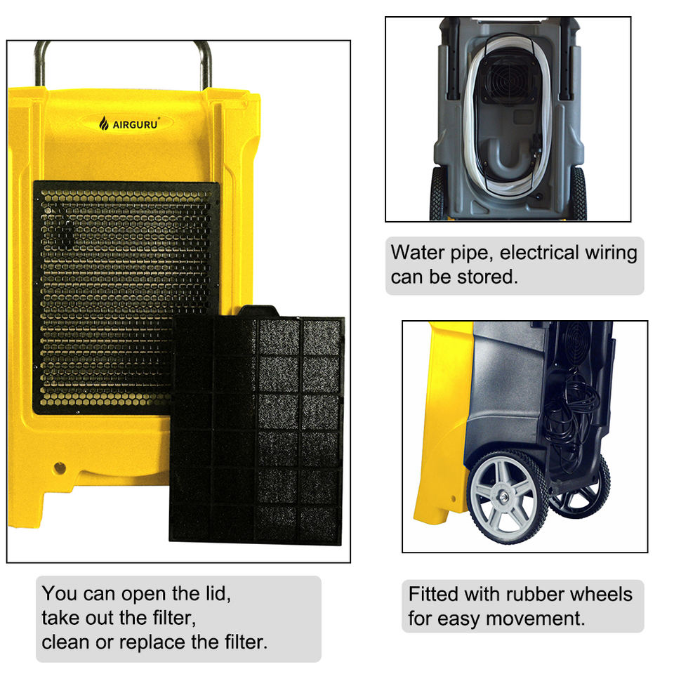 AONE-90LGR ลดความชื้นเชิงพาณิชย์-168pints (90L)/วัน940W พร้อมท่อระบายน้ำอัตโนมัติและจอแสดงผล LED สำหรับคลังสินค้า