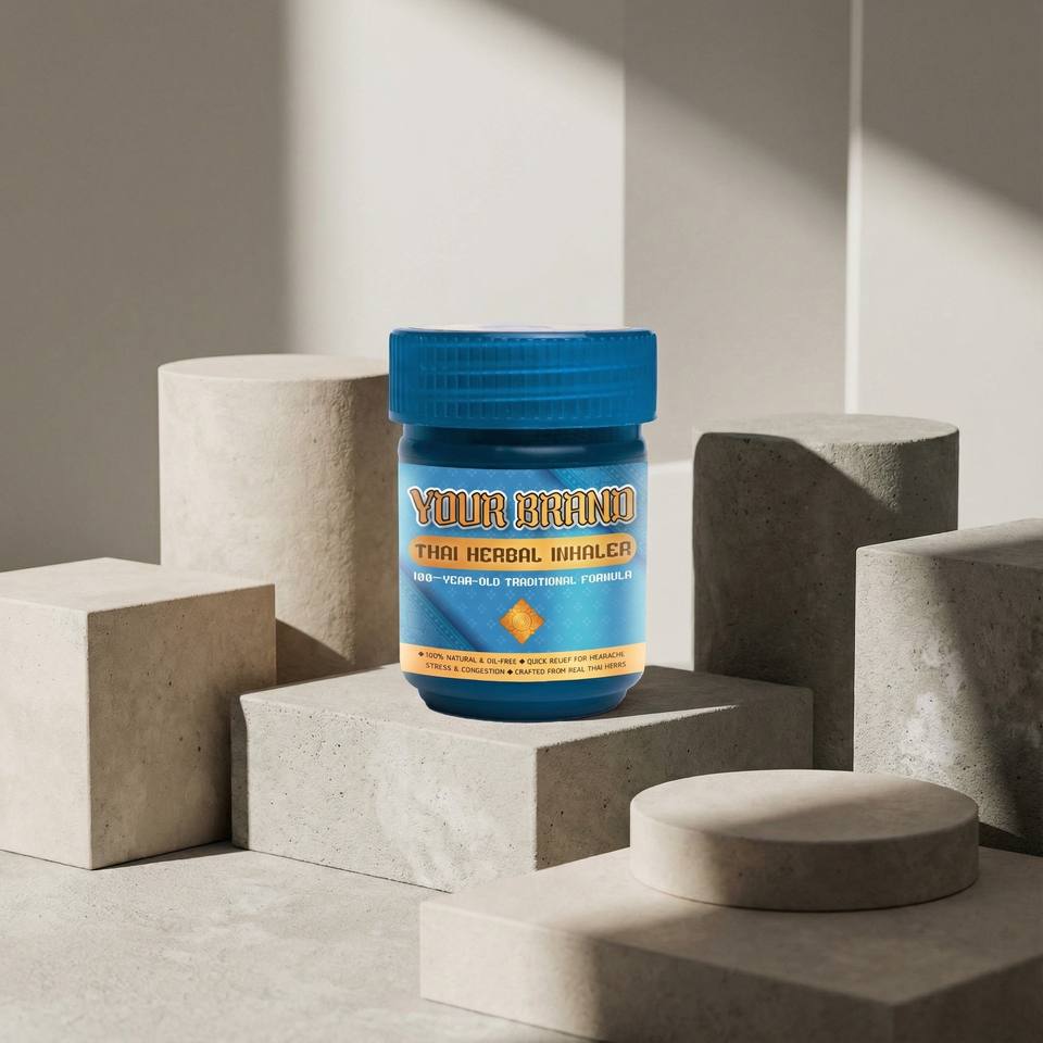 ยาหม่องพลาสติกแบบสูดดมสมุนไพรไทย ผลิตในประเทศไทย บรรจุผงเมนทอล แคมฟอร์ ตะไคร้หอม อบเชย ส่วนผสมจากธรรมชาติ รับผลิตแบบ OEM