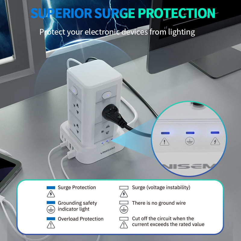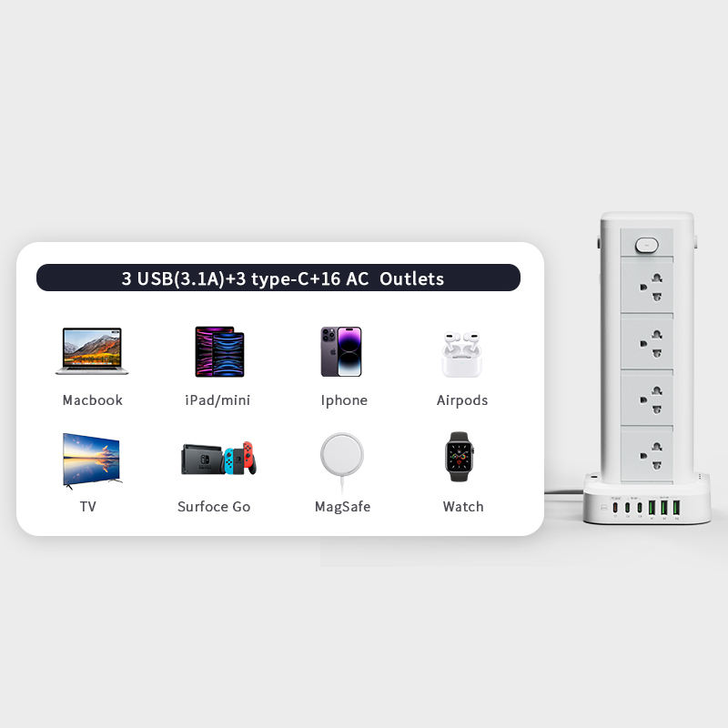 คุณสมบัติ:ที่มีพอร์ตUSB, ช่องเสียบสายแจ็กหลายช่อง, พร้อมพอร์ต Type-C, ป้องกันการโอเวอร์โหลด, พร้อมสวิตช์
