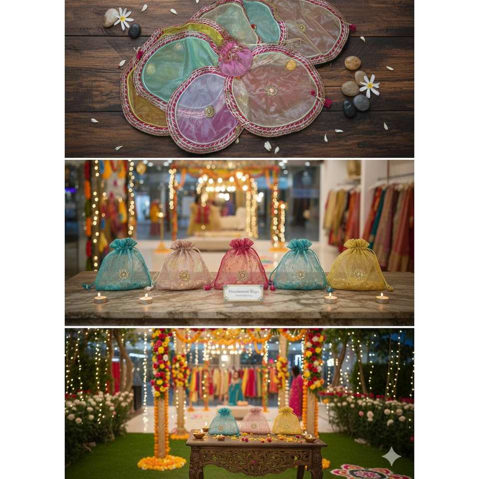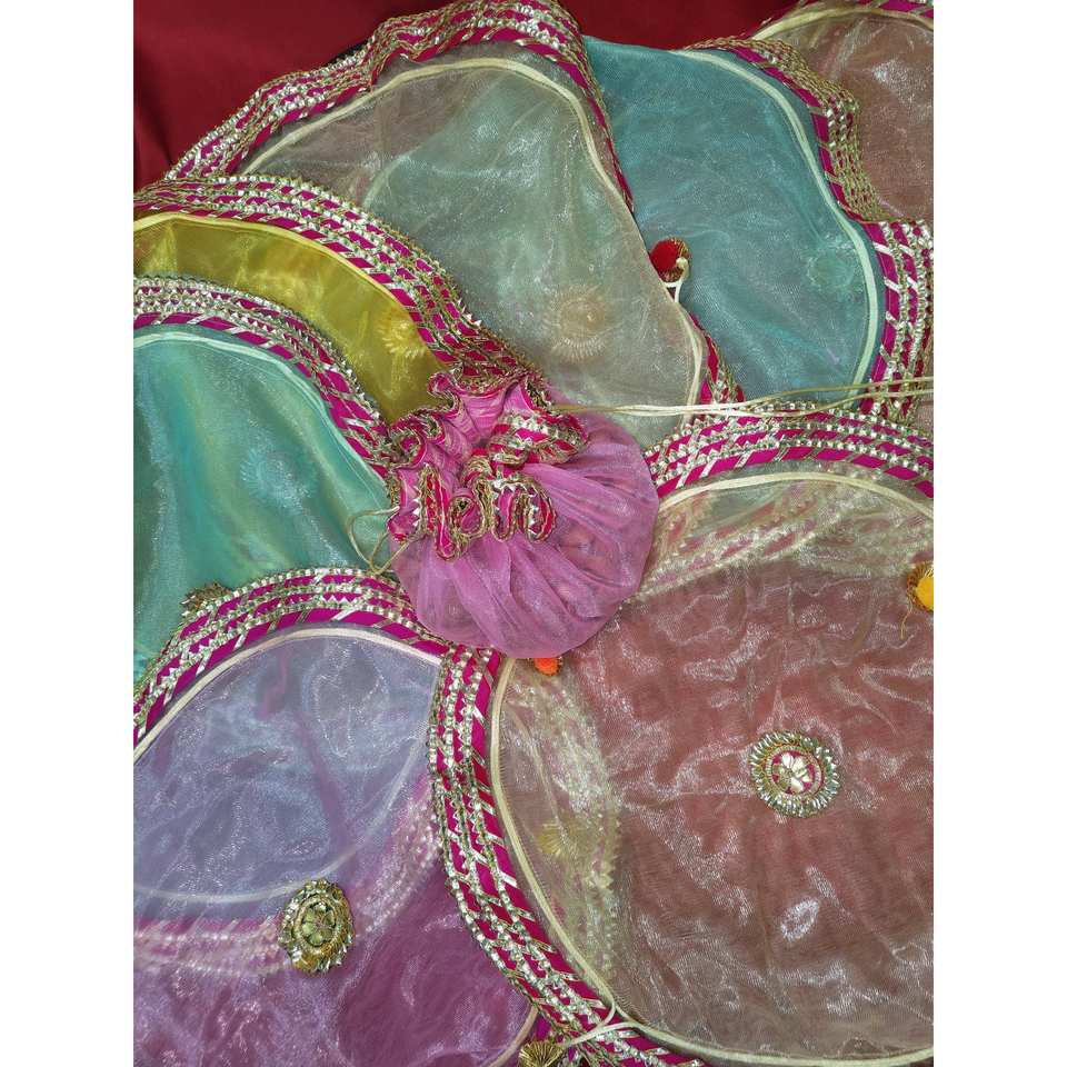 ถุงผ้าออร์แกนซ่าแบบเรียบง่ายสำหรับใส่ของขวัญ ของชำร่วยงานขึ้นบ้านใหม่ งานดิวาลี งานแต่งงาน ผ้าคลุมถาดพูจา ของชำร่วยงานเทศกาล
