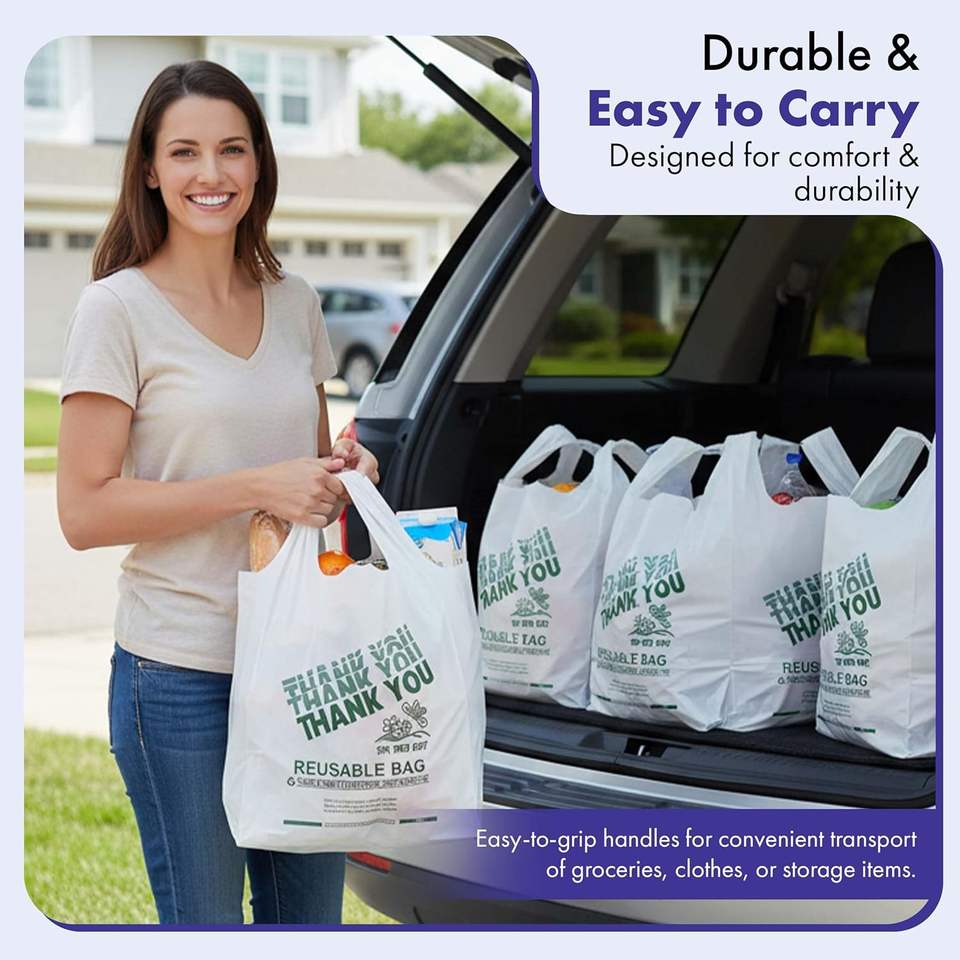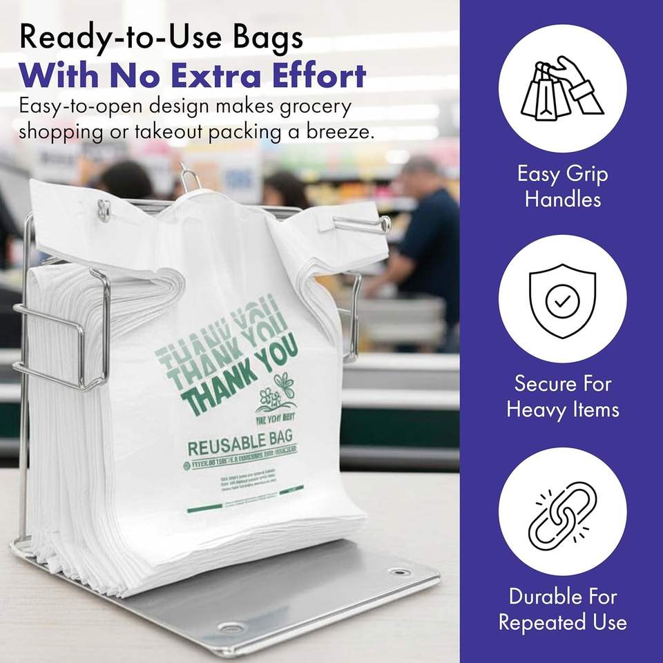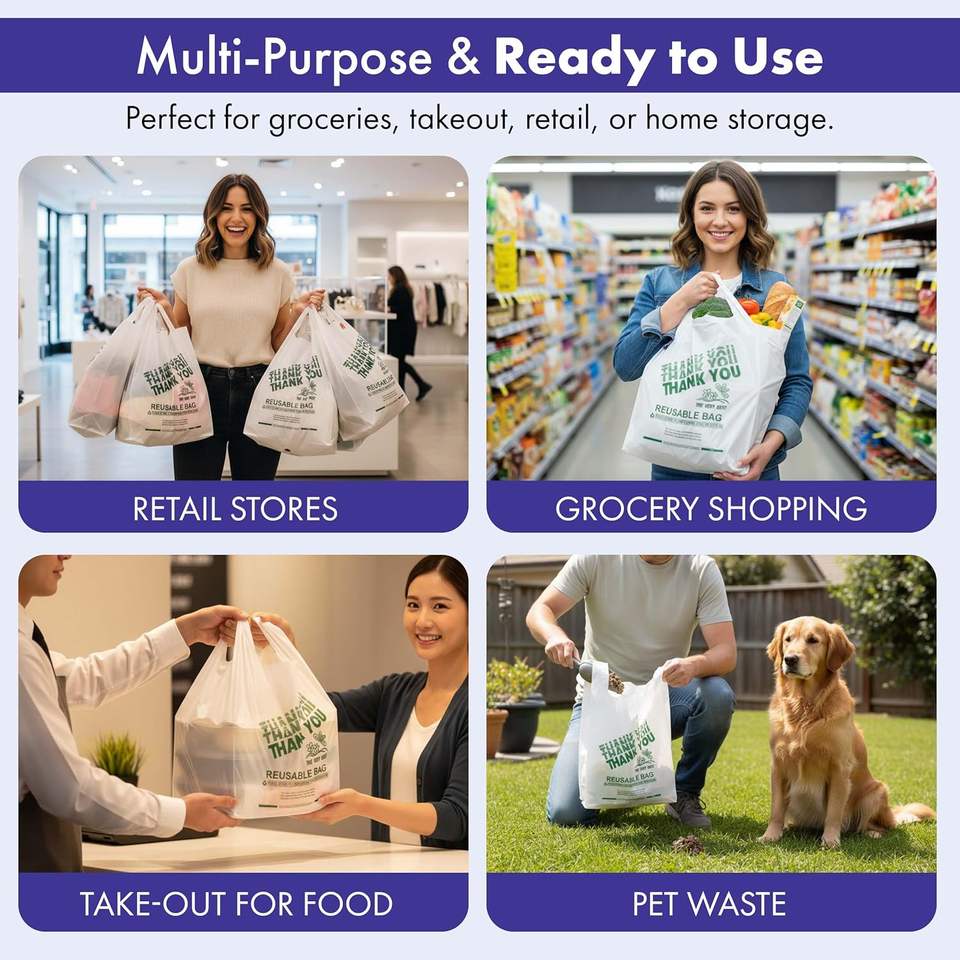 ถุงขอบคุณลูกค้า ถุงช้อปปิ้งแบบย่อยสลายได้ PE/PP พร้อมหูหิ้ว ทนทาน ใช้ซ้ำได้ เหมาะสำหรับร้านค้าปลีก ร้านอาหาร บรรจุภัณฑ์ขนาดเล็ก