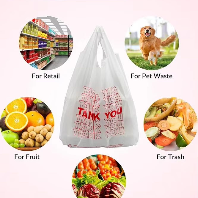 ขอบคุณถุงพลาสติกที่มีที่จับ12 "x 6" x 22 "15ไมค์ถุงของชำสีขาว-เหมาะสำหรับร้านขายของชำร้านอาหาร
