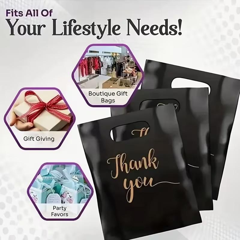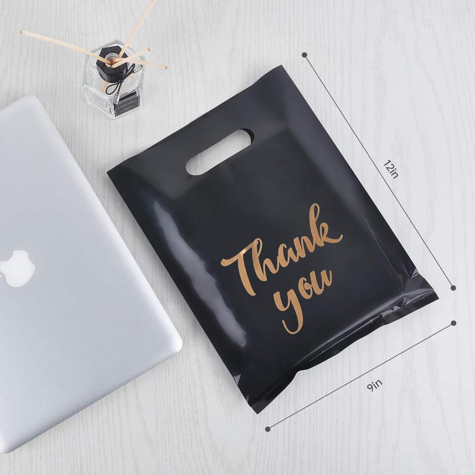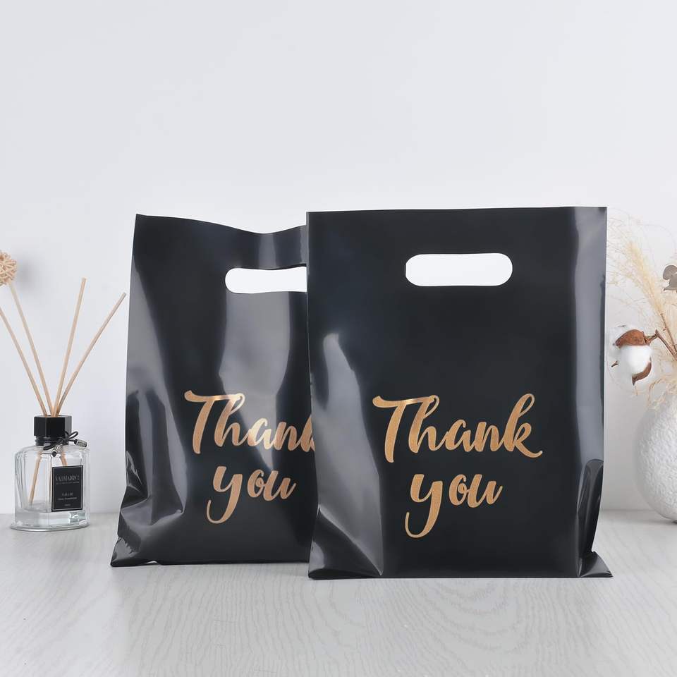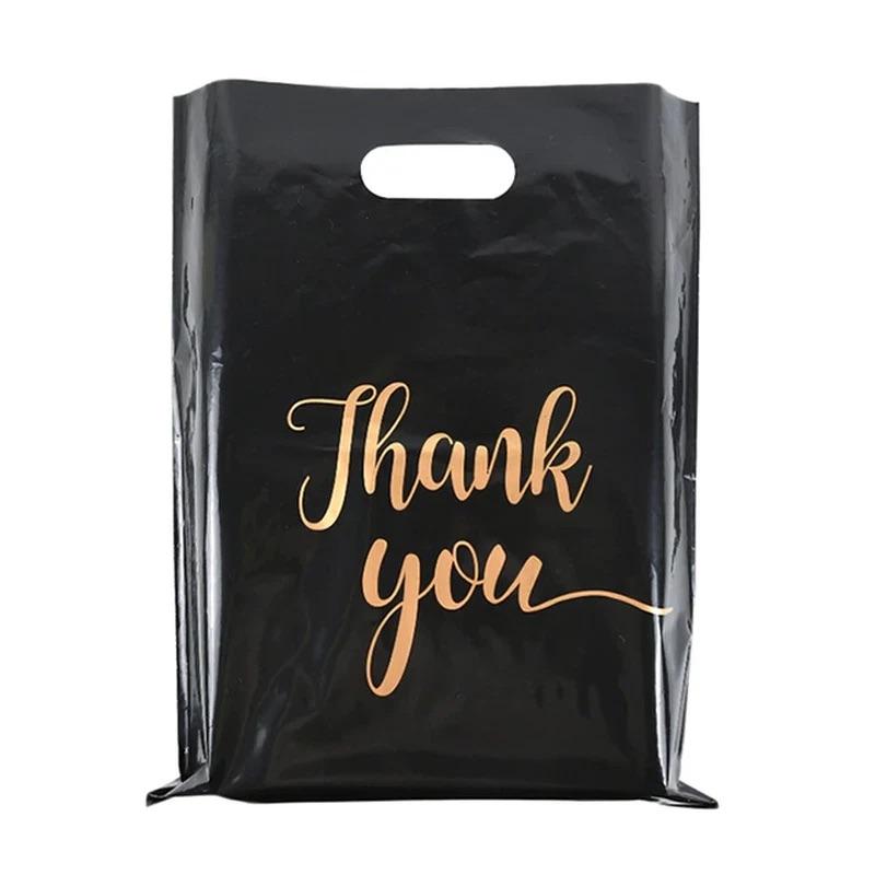 Thank You Shopping Gift Party Favour Bags with Handles 15x20cm Business Packaging Goodie Reusable Bag Black Gold