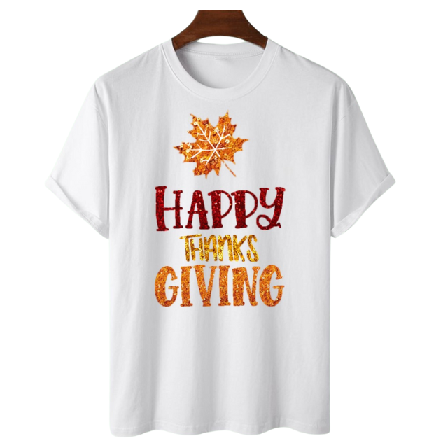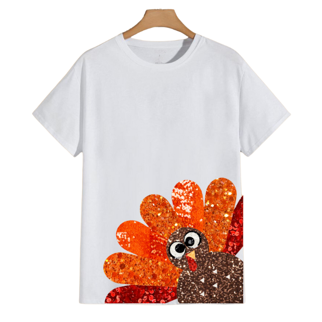 เสื้อยืดคอกลมแขนสั้นผ้าปะติดเลื่อมลายไก่งวงน่ารักสำหรับ100% ขอบคุณพระเจ้าเสื้อยืดโอเวอร์ไซส์ออกแบบโลโก้ได้ตามต้องการ