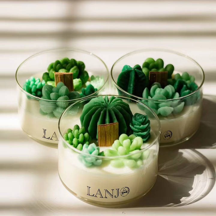 เทียนหอมอโรมาเธอราพีทำมือ ออร์แกนิค กลิ่นหอมติดทนนาน สำหรับตกแต่งบ้านในวันขอบคุณพระเจ้า วันคริสต์มาส วันพ่อ LANJO รุ่นกระบองเพชรแบบกำหนดเอง