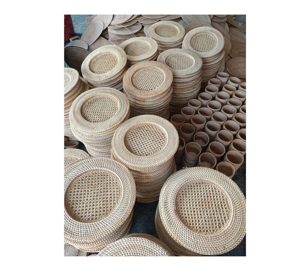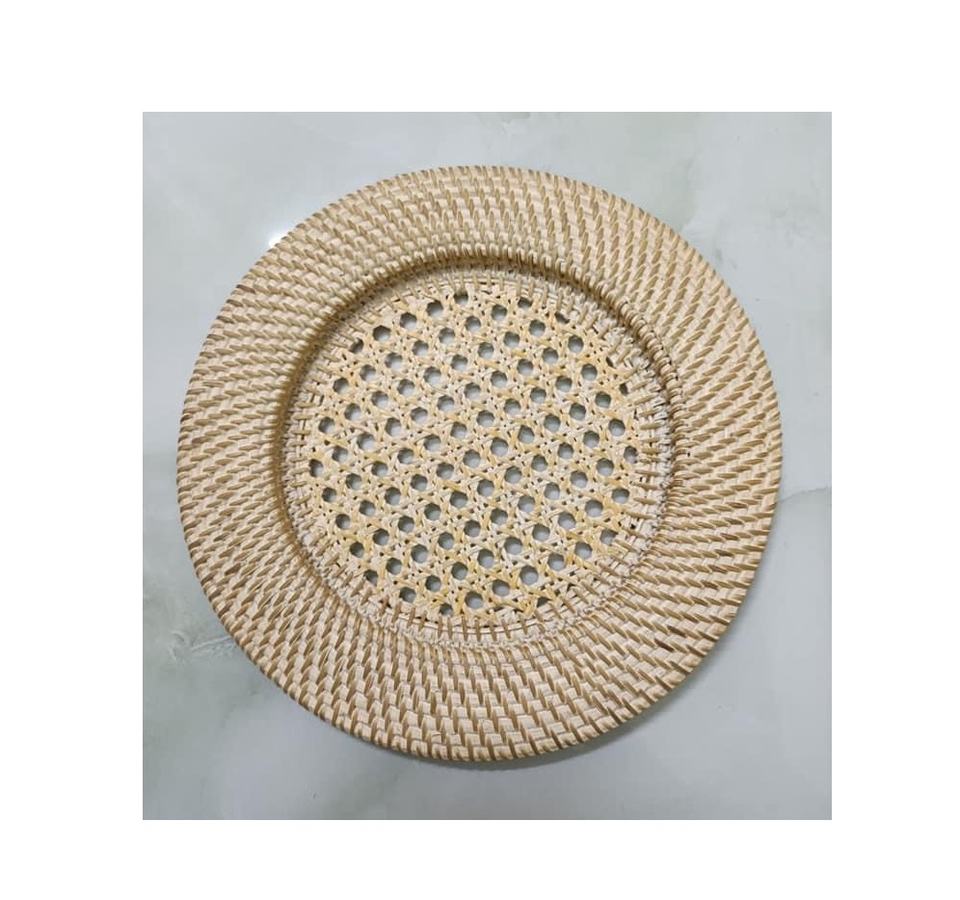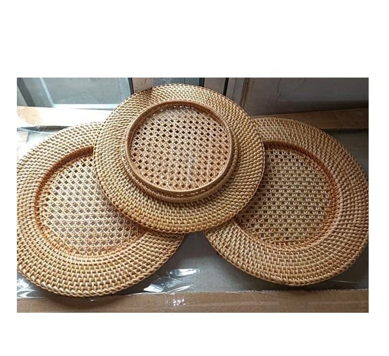 จานหวายไม้ไผ่แบบปรับแต่งได้สำหรับงานเลี้ยงวันหยุดงานแต่งงานจานหวายบนโต๊ะอาหาร