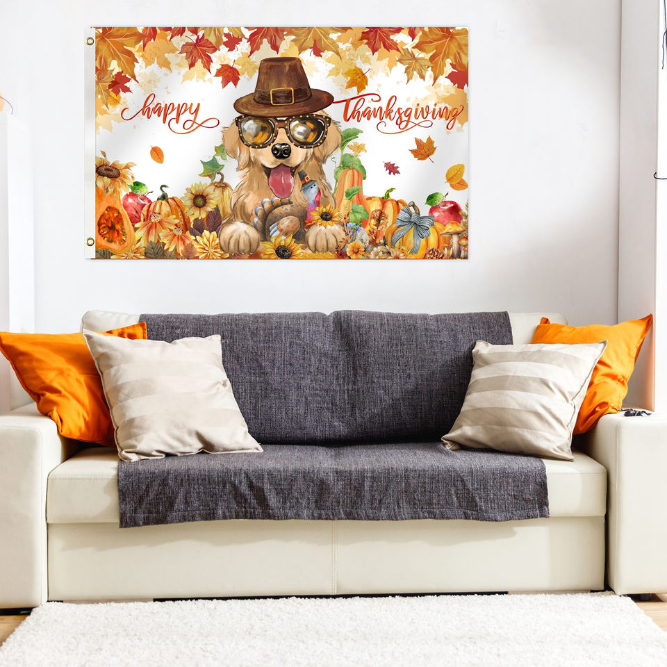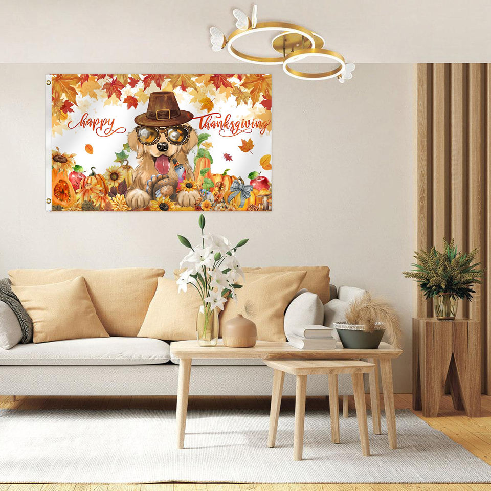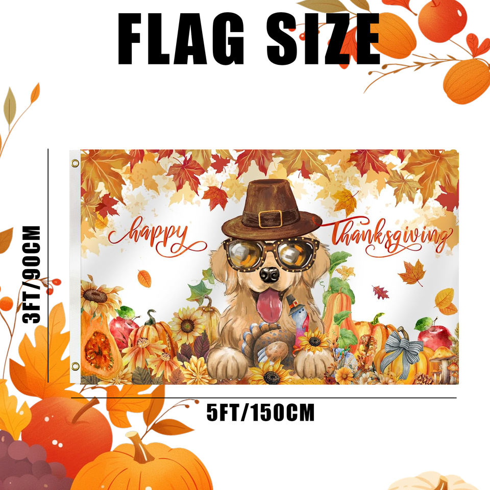 ธงสามเหลี่ยมสองด้านขนาด 3*5 ฟุต สำหรับวันขอบคุณพระเจ้า เทคนิคการพิมพ์ดิจิทัล ของตกแต่งสนามหญ้ากลางแจ้ง