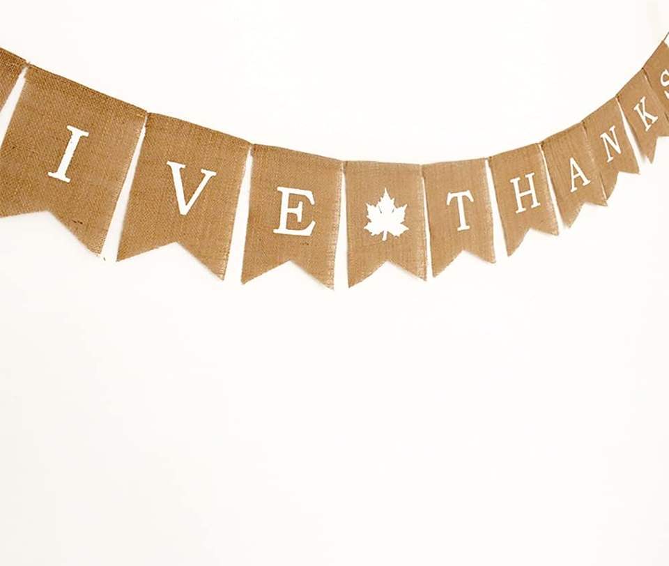 ของตกแต่งวันขอบคุณพระเจ้า ป้ายผ้ากระสอบสไตล์โมเดิร์น พิมพ์ตัวอักษรสีขาว ป้ายตัวอักษรสำหรับงานปาร์ตี้ พวงมาลัย ต้อนรับวันขอบคุณพระเจ้า