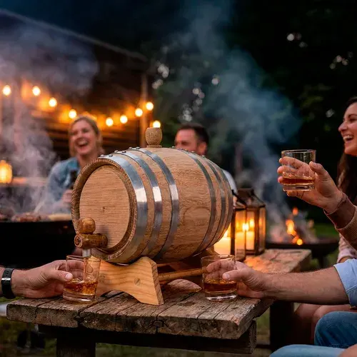 ถังไม้โอ๊คสีขาวขนาด 5 ลิตร The Barrel House แบบเป็นมิตรต่อสิ่งแวดล้อม พร้อมฐานไม้ ฝาปิด และกุญแจ สำหรับการบ่มไวน์