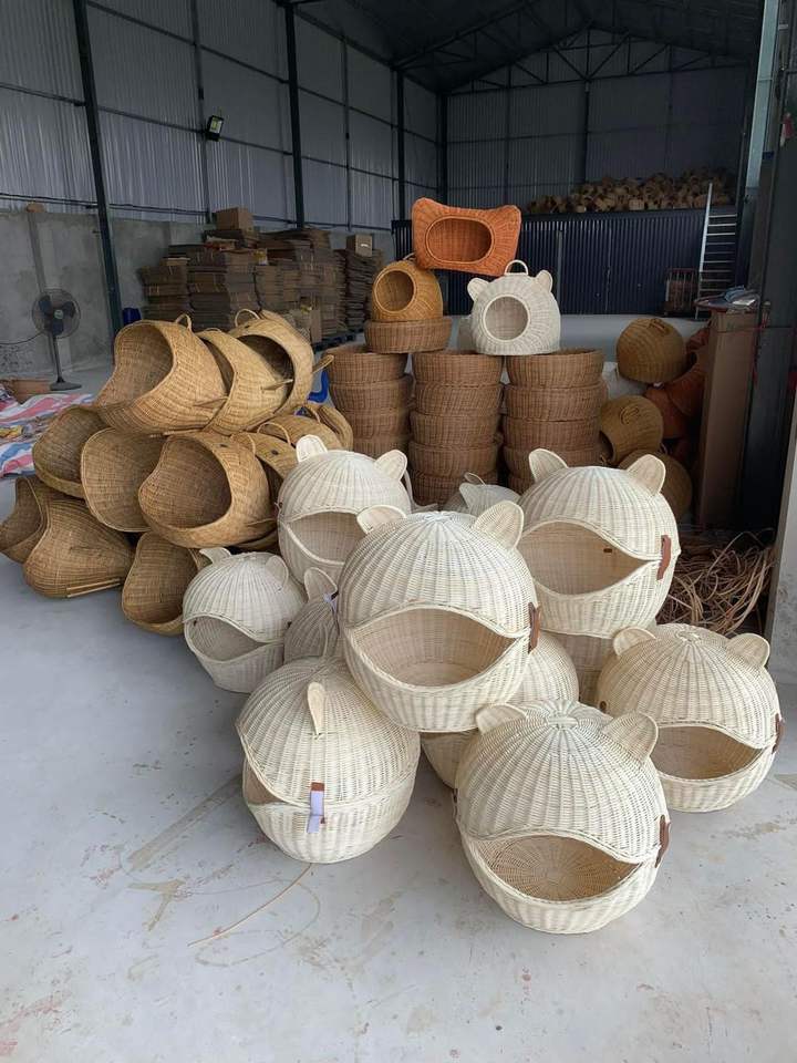 เตียงหวายสำหรับแมวแบบคลาสสิกบ้านหวายทำมือสำหรับแมว99GD บ้านสำหรับสัตว์เลี้ยงธรรมชาติ